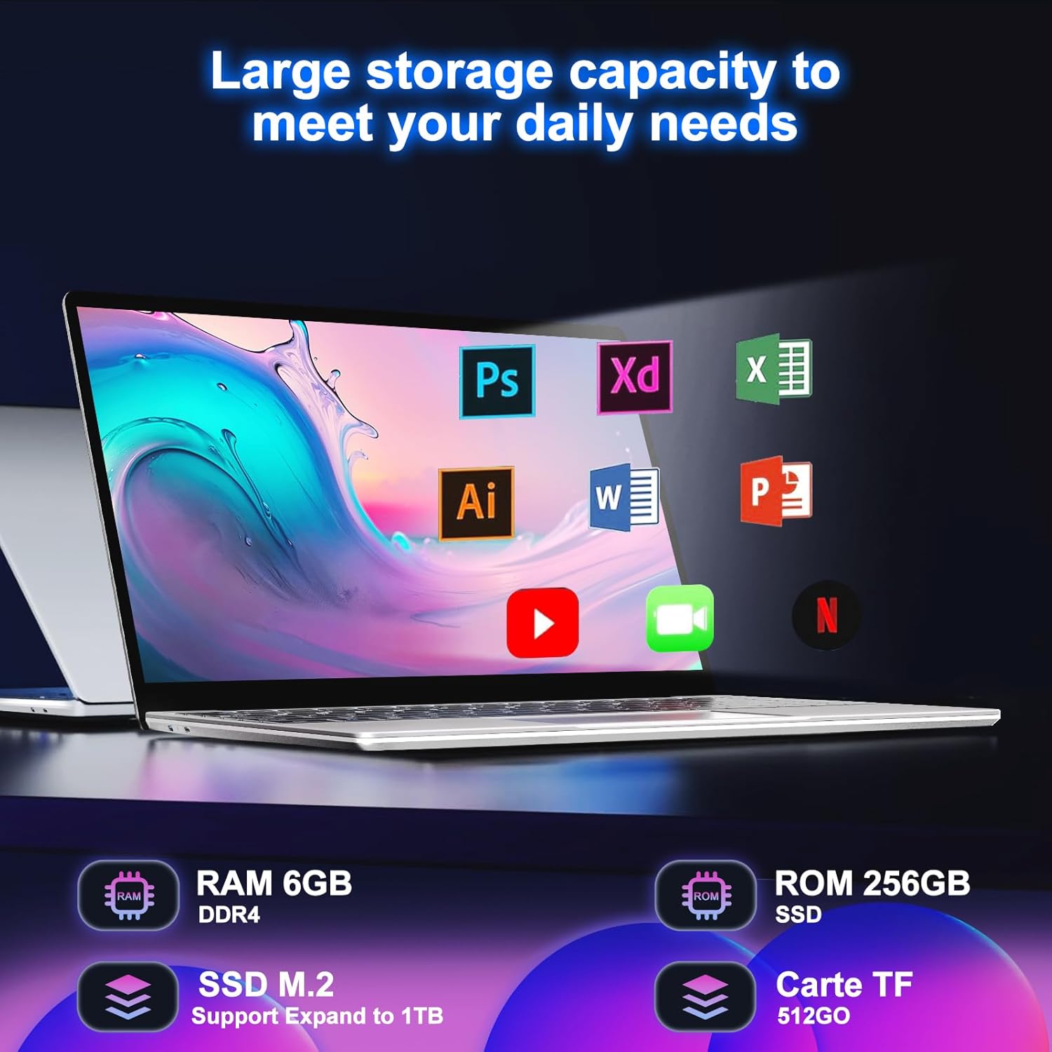 Performance and storage space:Traditional Laptop harnesses celeron N4020 processor, featuring 6GB of DDR4 RAM and a 256GB high-speed SSD, efficiently operating at frequencies up to 2.8GHz. Compared to traditional drives, it offers multitasking capabilities and enhanced graphics performance. The laptop supports connectivity with a 512GB TF card, 1TB SSD