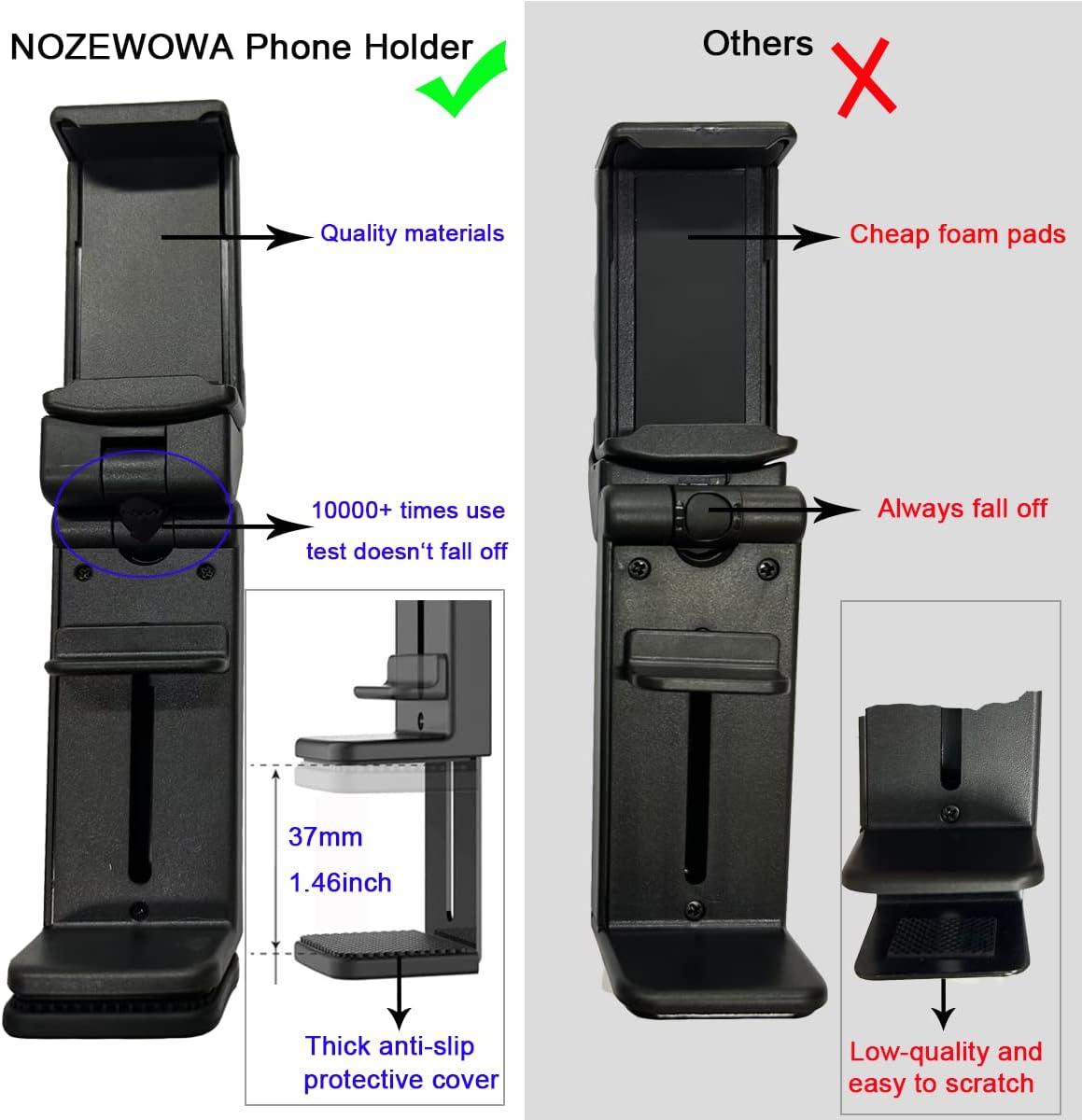 🛫Small Phone Stand with Strong Clamp:The Strong clamp of this phone holder for desk holds your phone perfectly so that it won’t drop. Perfect angle and size for making video calls hands-free.Portable design easy to folding and suitable for carrying work or travel, golf practice.