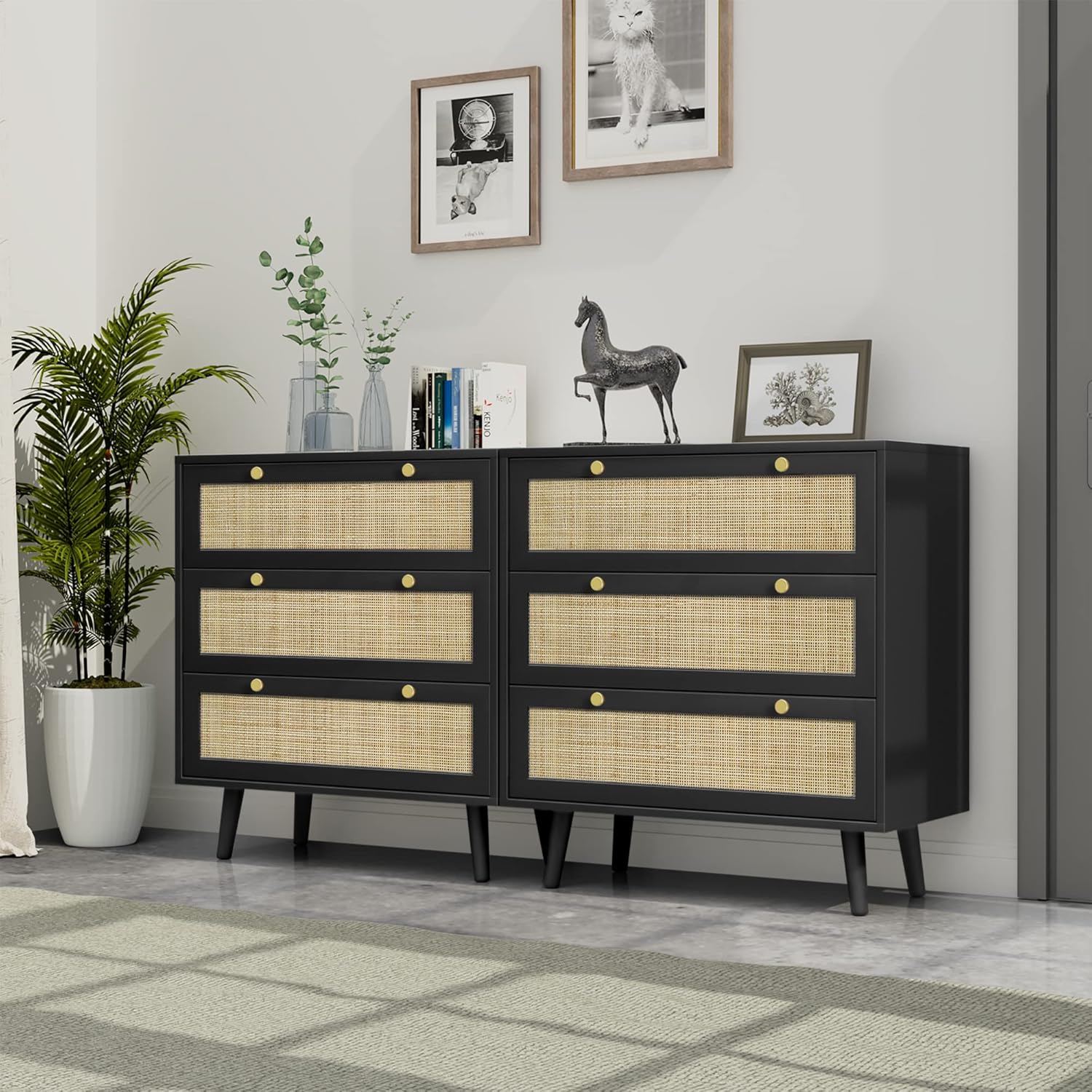 Be the first to review “Anmytek Black Rattan Dresser for Bedroom, Modern 3 Drawer Dresser with Rattan Decor, Chest of Drawers with Spacious Storage Dresser for Bedroom, Hallway”