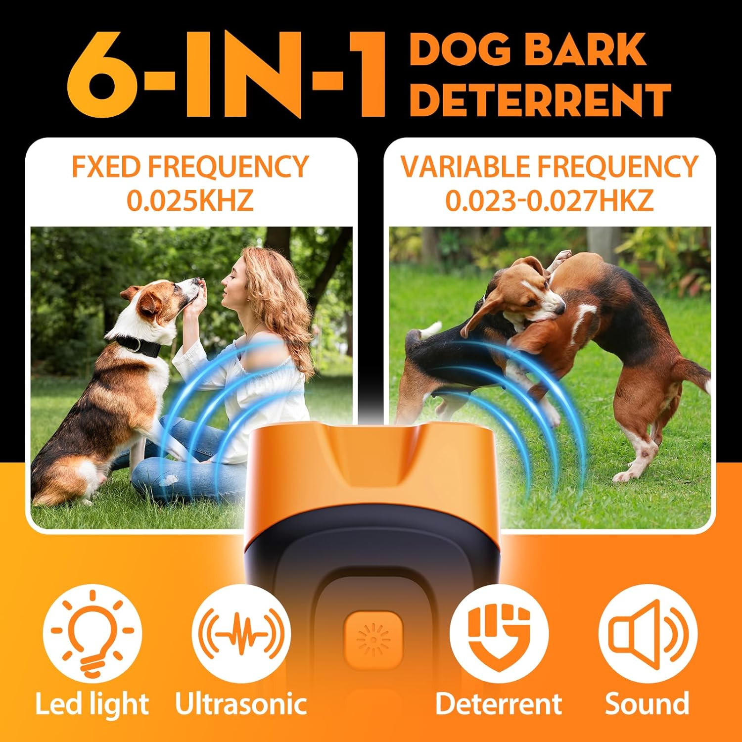 HUMANE DOG BARK TRAINING: Our dog bark deterrent device utilizes dual ultrasonic frequencies (fixed 0.025kHz and variable 0.023–0.027kHz), incorporating seven different ultrasonic patterns that cycle through for versatile training options. Whether for everyday training or addressing persistent barking, this anti barking device for dogs is designed to work effectively on various types of dogs without causing pain or discomfort
