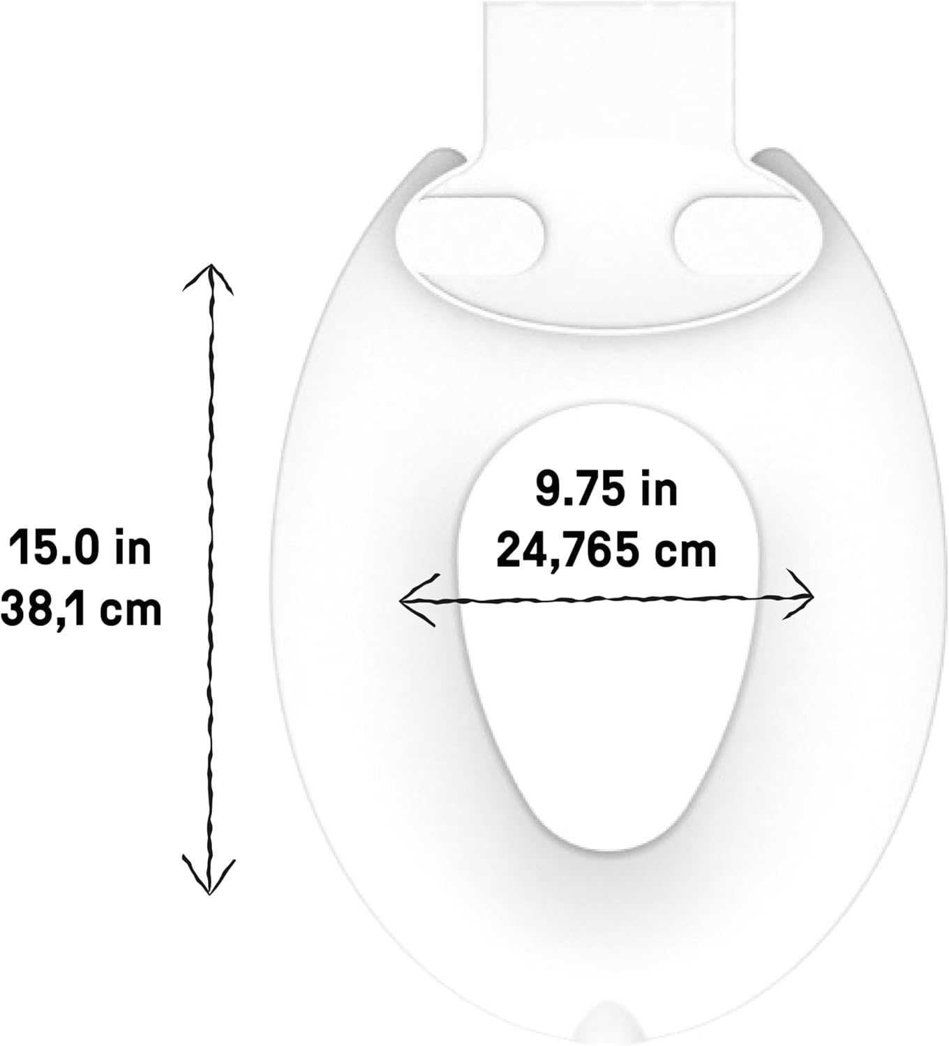 The Flip & Sit Potty Seat is recommended for children ages 18 months or up to 50 pounds, whichever comes first; assembled dimensions are 9.75″ x 1.75″ x 15″
