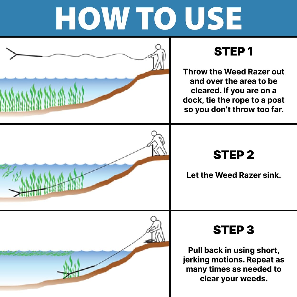 Reduces Timely Maintenance: When used regularly, the Weed Razer will keep aquatic weeds in check. Maintain your dock, shoreline, and up to 30 feet into the waterbody with the included 25-foot rope.