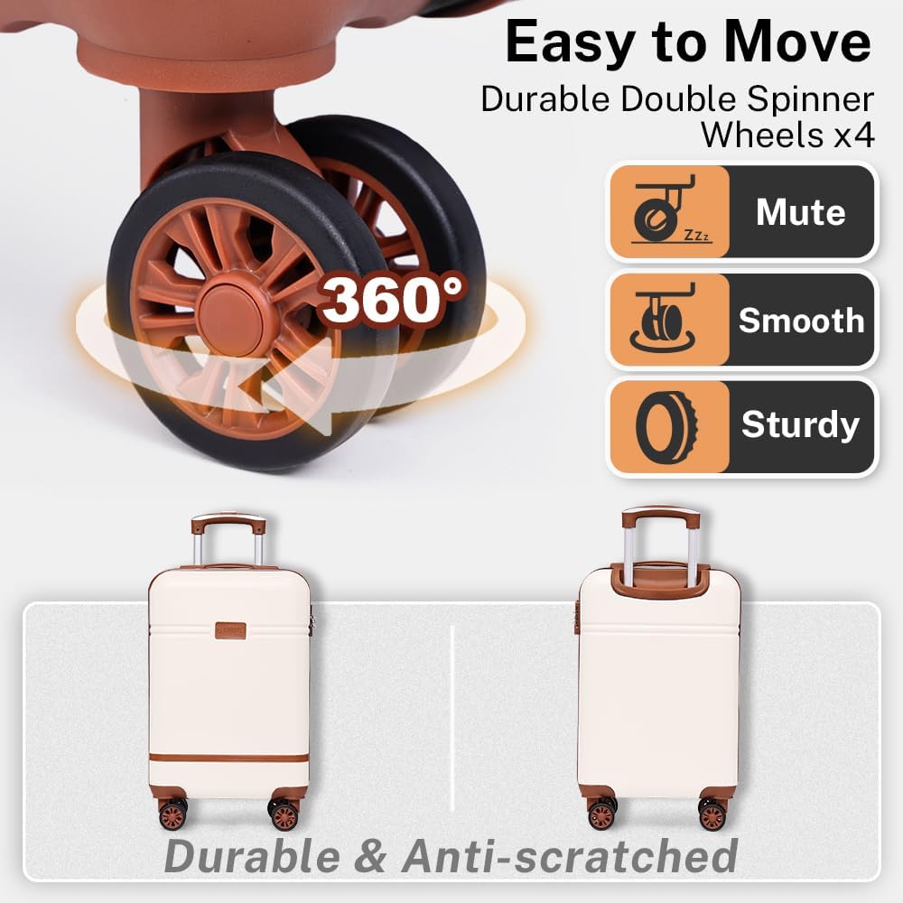 Krute Luggage Set 3 Piece Carry On Luggage PC+ABS Lightweight Suitcase Set for Travel with TSA Lock Spinner Wheels (WhiteBrown)