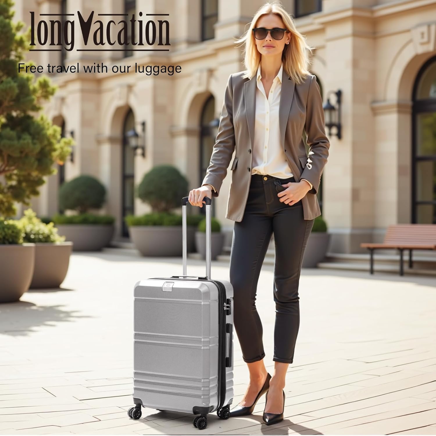 【Effortless to Move】360°spinner wheels roll silently and smoothly in every direction. It maneuvers effortlessly, whether you’re pushing or pulling in crowded airports or across various terrains. With its adjustable 3-level telescopic handle, LONG VACATION luggage enables a comfortable pulling height for every traveler. Built to be sturdy and wobble-free, it is engineered to handle the rigors of travel.