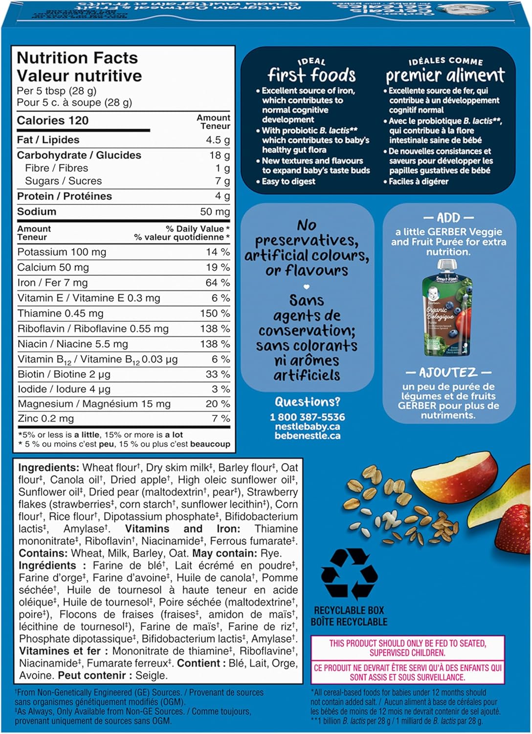 The ONLY Toddler Cereal with probiotic B.lactis, which contributes to a healthy gut flora. 1 billion B. lactis per 28g serving