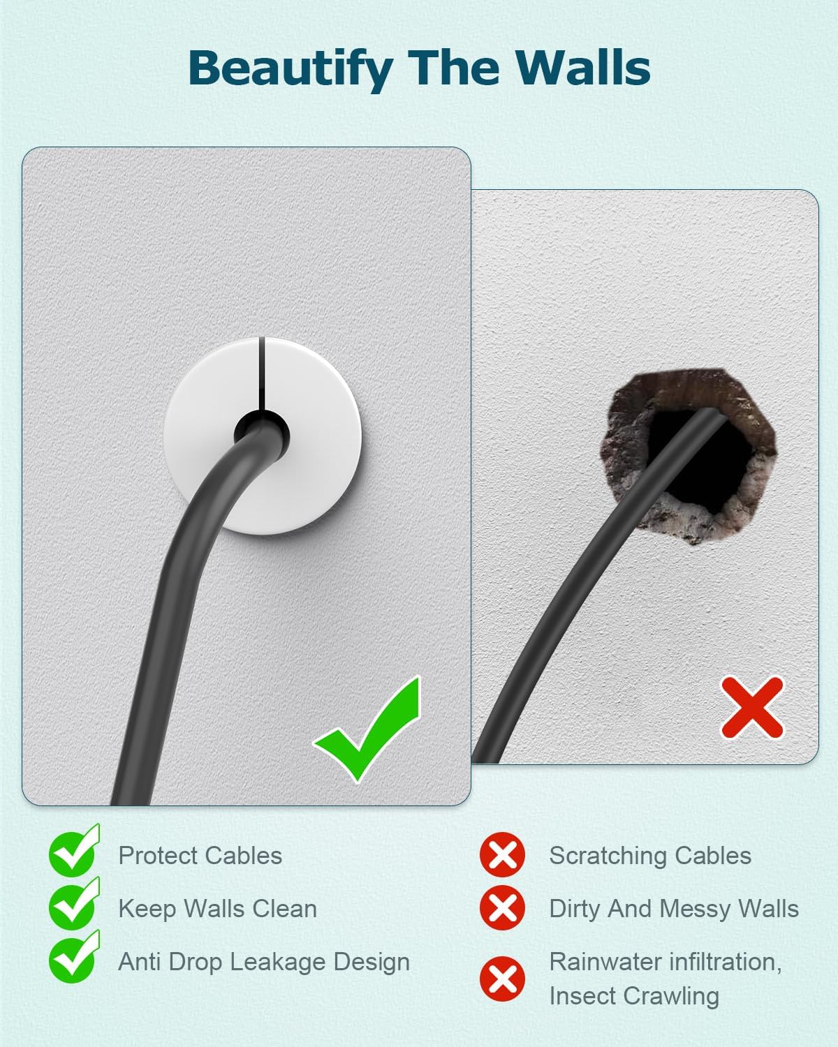 【High Compatibility】White starlink wall grommet is compatible with starlink cables and all cables with a maximum diameter of 7mm(0.27inch),the wall perforation diameter is 19mm(0.74inch).The silicone sealant provided can prevent rainwater and other liquids from seeping in, and also prevent the sleeve from falling off, making the sleeve more firmly fixed on the wall.