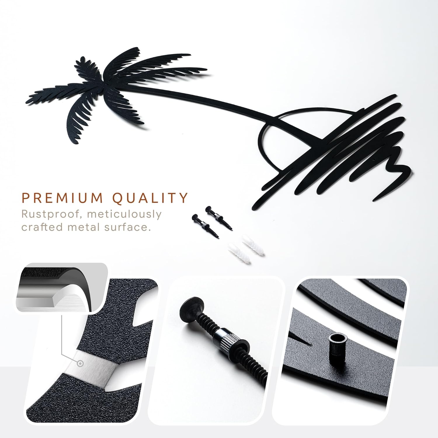 DURABLE CRAFTSMANSHIP: Our metal wall decors are meticulously crafted from premium materials to guarantee durability and lasting quality. With attention to detail and aesthetic appeal, each piece boasts intricate designs that captivate attention and elevate any room’s ambiance. Coated with static powder for enhanced resistance against rust and corrosion, they are built to withstand the test of time, ensuring long-term display in any environment.